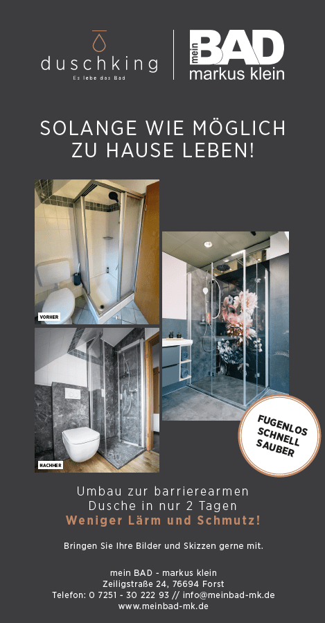 Seit über 15 Jahren stehe ich für hochwertige, seniorengerechte Badsanierungen und gelte in der Region Karlsruhe & Umgebung als Spezialist für moderne, fugenlose Duschsanierungen. Besonders am Herzen liegt mir, Ihre individuellen Wünsche zu verstehen und Ihnen Lösungen zu bieten, die Sie rundum begeistern.